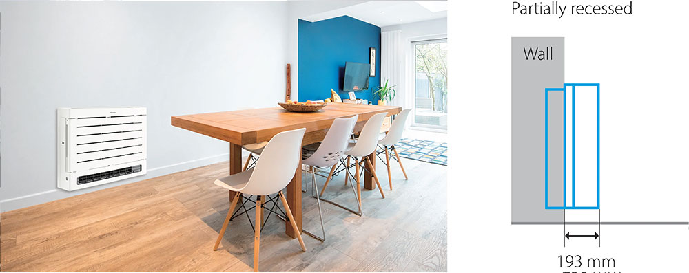 These dimensions mean a unit can easily be raised up and placed on or in a wall above the skirting board.